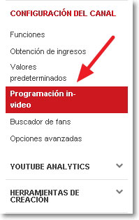 Aquí encontrarás la zona donde debes trabajar para colocar tu vídeo de introducción, se llama “Programación in-vídeo” como veras en tu canal aparece las diferentes formas de promover tu marca en tus vídeos, esto es la manera de colocar tu logo para atraer usuarios y que se suscriban.