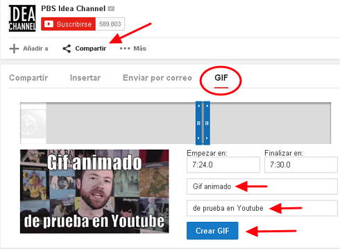 Youtube está realizando pruebas oficiales con vídeos para que se puedan convertir en gif´s animados, de esta manera se pueden insertar en cualquier blog, web o red social.