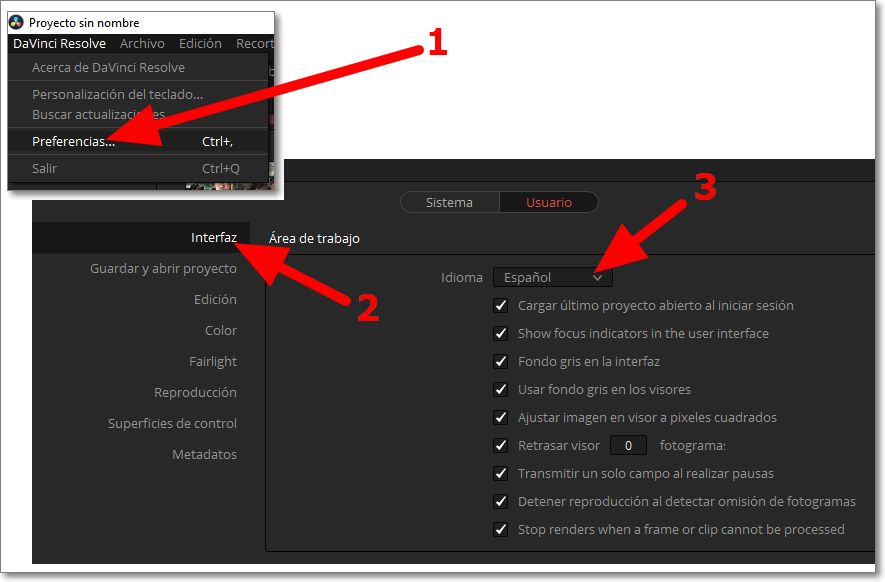 Pasado unos minutos e instalado el programa puedes cambiar el idioma desde las “Preferencias“. Accede a “Interfaz” y cambia a “Español“