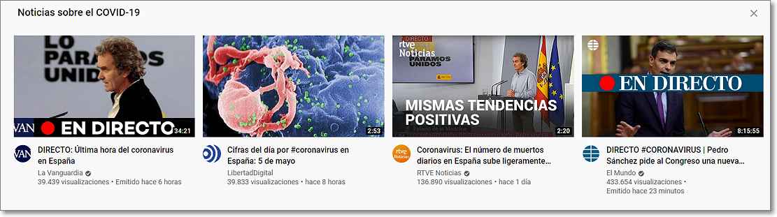 Con la actual pandemia de coronavirus los usuarios de Youtube buscan información referente al tema y la audiencia se está incrementando en los medios que ofrecen noticias sobre el Covid-19.